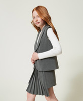 Girls’ short skirt made from technical flannel with sunray pleated side panel. Regular waist, concealed side zip, metal Oval T logo plate at the back, lining, asymmetric with slight A line.
