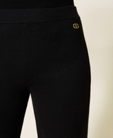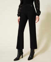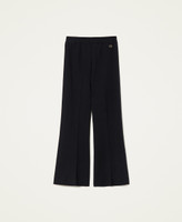 Stretch viscose flared knit trousers with inner elastic at the waist and Oval T logo plate.