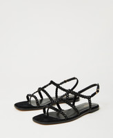 Flat sandals with full rhinestone cage upper and tunit sole.