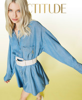 Actitude collection floaty denim short shirt dress with long sleeves and snap button closure.