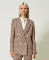 Double-breasted blazer made from yarn-dyed viscose blend with glen plaid pattern, button closure, lining.