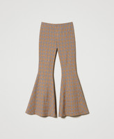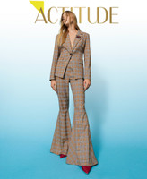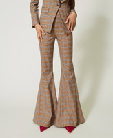 Tailored elegance for these maxi-flare trousers made from stretch fabric with glen plaid pattern, wide flare fit, side zip closure. Show them off with their matching blazer for a new kind of power dressing.