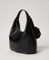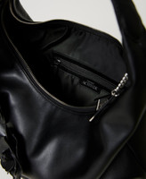 Actitude collection hobo bag made from soft leather-like material with 3D floral appliqués in front and zip closure.