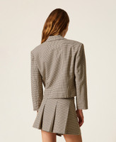 Actitude collection micro houndstooth cropped blazer with double-breasted button fastening, flared sleeves, lining, slim fit.