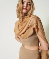Jacquard viscose kefiah with Oval T logo all over and frayed hem.