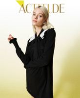 Actitude collection short plain knit cotton dress with punched insert and removable collar with ribbon.