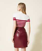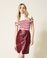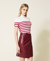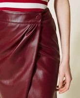 Leather-like wrap-around skirt with snap button, straight fit, lining.