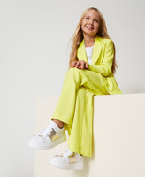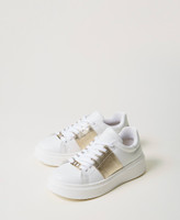 Girls' leather trainers with laminated stripe, lettering logo and rubber sole. Made in Italy.