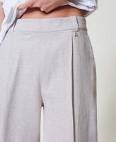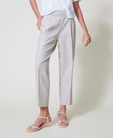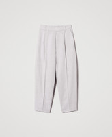 Actitude collection trousers made from woven linen and cotton blend fabric. Front pleats, elasticated waist, side zip fastening, slant pockets, straight fit.