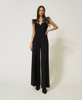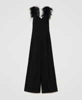- 68% viscose 27% polyamide 5% elastane. Trim: 100% ostrich feather.