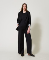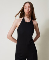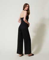 Linen and TENCEL(TM) blend jumpsuit with slanted construction and comfortable hand feel. Halter neck, side zip fastening, Oval T logo plate on the back, striped silk lining, straight fit. This item is part of the “Archive” range, inspired by the most iconic and most loved garments from the Twinset collections. The viscose used for this item (57% Viscose) generates lower emissions and uses less water than average viscose.