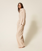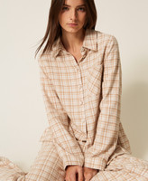 Mannish cotton pyjamas with check pattern. Straight fit top with shirt collar, long sleeves, covered button fastening, patch pocket, heart-shaped logo plate on the back. Wide bottoms with elasticated waist.