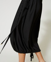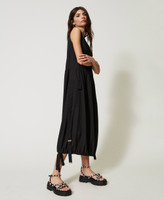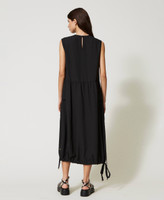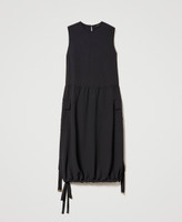 You can wear it all the time. Midi dress made from 50% post-consumer recycled polyester crêpe de Chine, sleeveless, round neck, teardrop opening with button on the back, tailored waist, flap pockets on the sides, ribbons with metal tips, unlined. Soft fit, adjustable at the hem via drawstring. This style is part of the Revive conscious programme from Actitude by Twinset.
