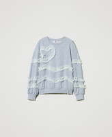 Mottled cotton sweatshirt with tulle ruffles on the front and on the long sleeves, ribbed trims, metal logo plate at the back, regular fit.
