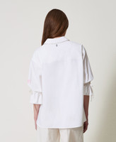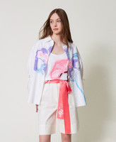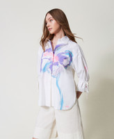Shirt designed by artist Myfo for the Actitude collection, made from cotton poplin with a placed floral print. Featuring three-quarter sleeves with drawstring adjustment, logo label appliquéd with hand-stitching, and a loose fit.