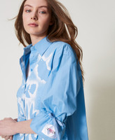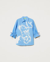 Shirt designed by artist Myfo for the Actitude collection, made from cotton poplin with a placed floral print. Featuring three-quarter sleeves with drawstring adjustment, logo label appliquéd with hand-stitching, and a loose fit.