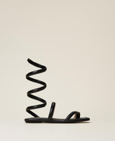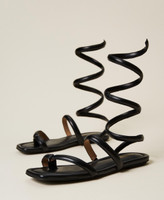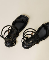 Nappa leather flat thong sandals with flexible spiral strap to mould on the instep, tunit sole.