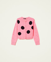 Actitude collection wool blend cardigan with maxi jacquard polka dots and openwork sleeves.