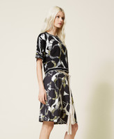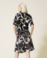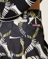 Printed poplin Bermuda shorts with pleats, zip and button fastening, contrasting rope effect belt and wide bordered hem. Outstanding patterns for your summer outfit.