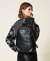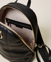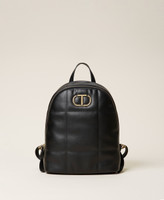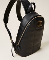 Fine grain quilted backpack with dual cursor zip, metal Oval T logo, adjustable padded shoulder straps.