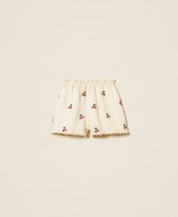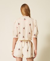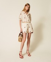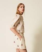 Ramie shorts with all-over cherry embroidery, a Twinset exclusive. Elasticated waist, ruffle hem, slant pockets, loose fit.