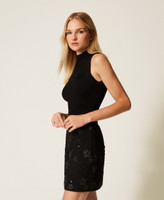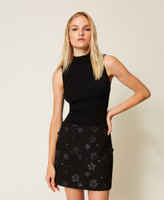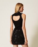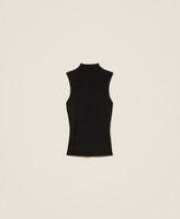 Actitude Revive collection sleeveless rib knit top made from recycled yarn (81% viscose made from pre-consumer recycled cotton), turtleneck, logo plate on the back, fitted.
