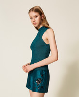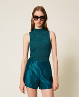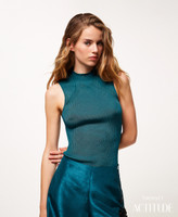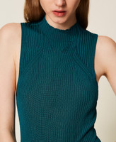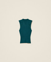 Actitude Revive collection sleeveless rib knit top made from recycled yarn (81% viscose made from pre-consumer recycled cotton), turtleneck, logo plate on the back, fitted.
