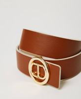 Reversible low waist leather-like belt with round Oval T buckle and pin closure.