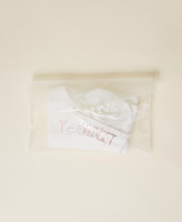 Stylish and comfy. Made in Italy from light cotton plush fabric with warm feel, this baby set of romper suit with flat snap buttons on the back, hat and bib is personalised with laminated logo print. With its organza bag with bow and rhinestone Twinset logo, this set makes the perfect gift.