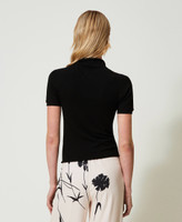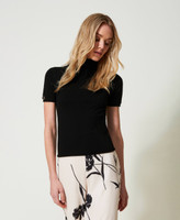Plain knit viscose blend turtleneck with short sleeves, Oval T logo and regular fit.