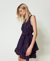 Short dress made in Italy with lightweight shimmering taffeta. Round neckline, gathered flounce at the hem, removable matching belt, lining, flared fit. This item is part of the “Archive” range, inspired by the most iconic and most loved garments from the Twinset collections.