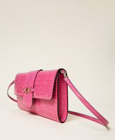 Leather-like croc print shoulder bag, flap and magnet closure, metal Oval T clasp.