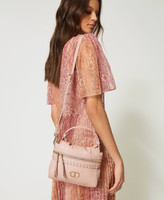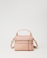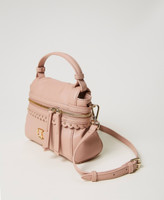 Small leather-like ‘Cécile’ top handle bag with dual cursor zip opening with scalloped finish and studs.