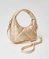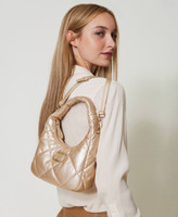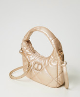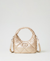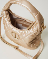 Small hobo bag made from padded and quilted soft and lightweight faux lambskin, zip closure, tonal varnished Oval T logo, handle, removable and adjustable shoulder strap, lining.
