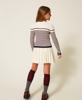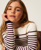 Girls' viscose blend striped turtleneck rib knit jumper, Oval T logo embroidery at the front, high neck, long sleeves, contrasting trims, fitted.