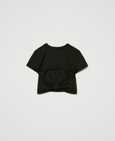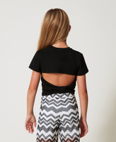 Girls' jersey T-shirt with crew neck and cut-out on the back, short sleeves, Oval T plate, fitted.