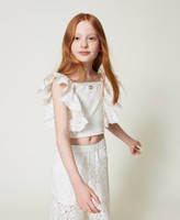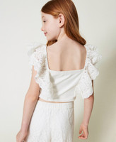 Stretch cotton jersey top with floral lace ruffle wings finished with broderie anglaise trim.