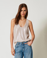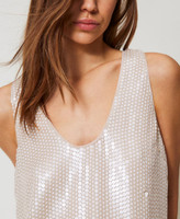 Top in fabric embroidered with sequins, featuring laces behind the neck, side slits, lining and a loose fit. Perfect for parties and formal occasions.