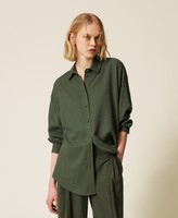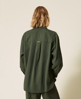 Twill shirt with hotfix micro studs all over. Shirt collar, covered button fastening, long sleeves with slouched shoulders and buttoned cuffs, rounded hem with side slits, back yoke with pleat, heart-shaped metal logo, wide fit.