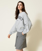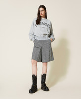 Sartorial perfection for this trouser skirt made from Italian wool blend fabric with houndstooth pattern. Flared fit with front pleats, slant pockets, invisible side zip, Oval T logo plate on the back and inner lining. Wear it with its matching short jacket and show off a new kind of workwear.
