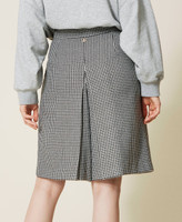 Wool blend trouser skirt with houndstooth pattern