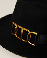 Wide brim wool hat with gros-grain ribbon and Oval T clasp.