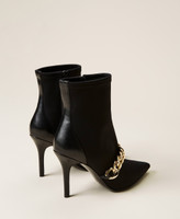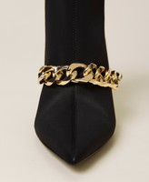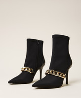 Fabric ankle boots with gold tone chain, inner zip closure and tunit sole.