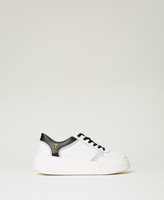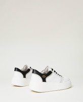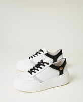Leather platform trainers with debossed patterns, contrasting colour finishes, Oval T logo and rubber sole.
