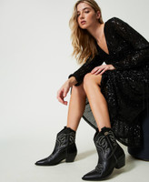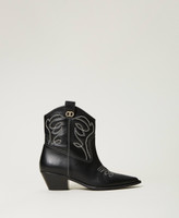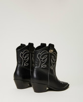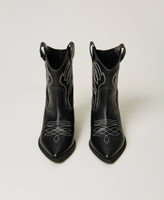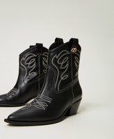 Calf leather cow boots with contrasting stitching and tunit sole.