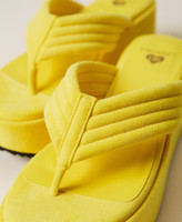 Suede effect platform thong sandals with stitched bands and logo on the insole.