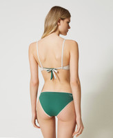 The perfect match: padded full sequin push-up bikini top with rose print and non-removable cups, tie-up laces around the neck or worn through their eyelet as shoulder straps, and a reversible two-tone regular fit bottom you can wear on whatever side you prefer. Pack them in your suitcase now!