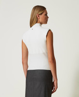 Actitude collection viscose blend top with turtleneck, padded shoulders and removable brooch.