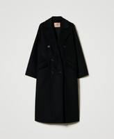 Long coat from wool blend fabric, combed to enhance its sheen. Pointy lapels, double-breasted fastening with tonal buttons with logo, long sleeves with slouched shoulders, slant pockets with welt and flap, lining, loose fit.