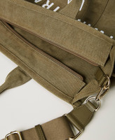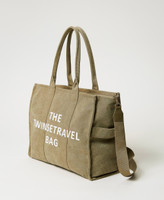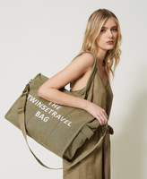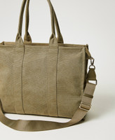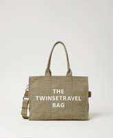 Natural canvas shopper with contrasting logo print, double handle for on-shoulder wear, no lining.